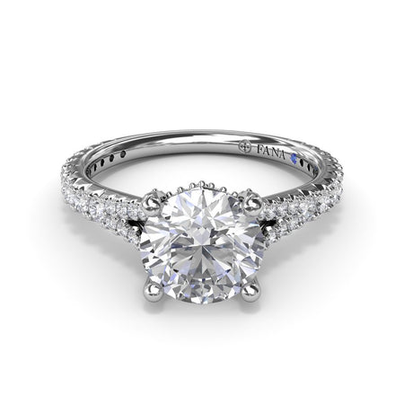 Six-Prong with Diamond Shank and Hidden Halo Engagement Ring Setting