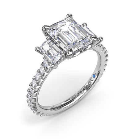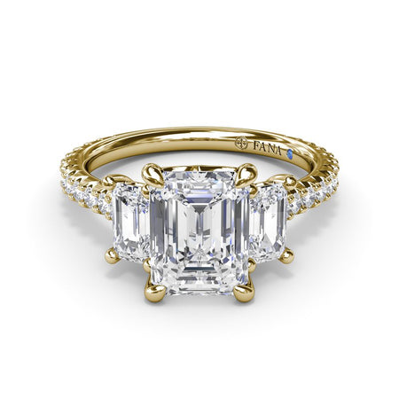 Three-Stone Emerald-Cut with Diamond Shank Engagement Ring Setting