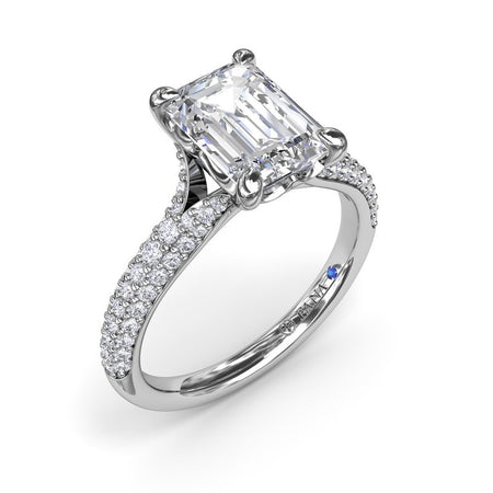 Triple Row Diamond Shank with Hidden Halo Engagement Ring Setting