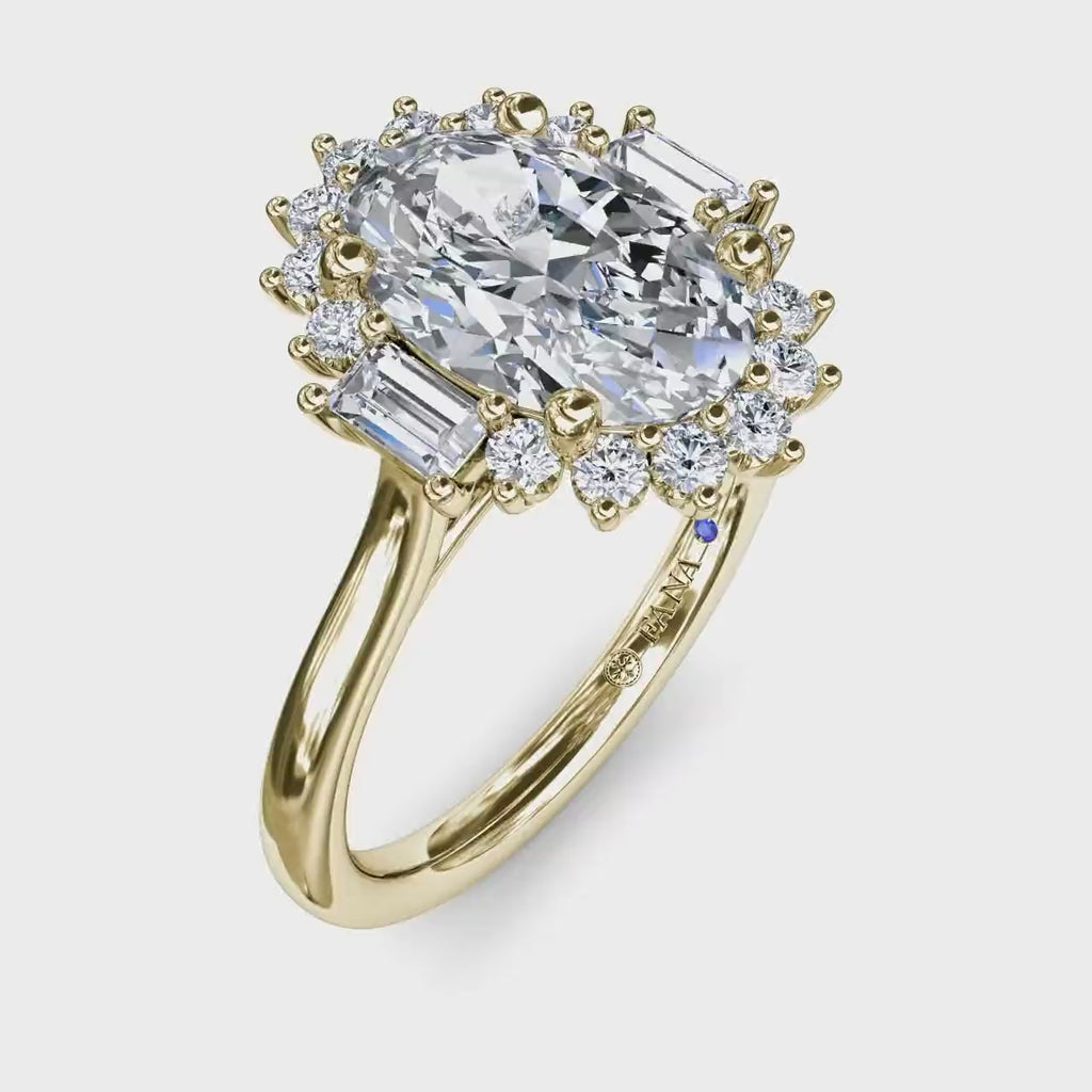 Oval Halo with Round and Baguette Diamonds Engagement Ring Setting